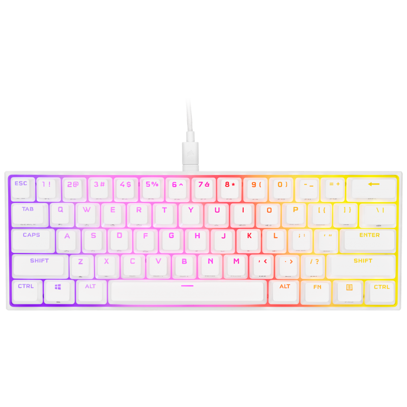 CORSAIR K65 MINI 60% mecanica, alb Full Key (NKRO) with 100% Anti-Ghosting Supported in iCUE Profiles up to 50 Wired Connectivity USB 3.0 or 3.1 Type-A Key Switches CHERRY MX RED