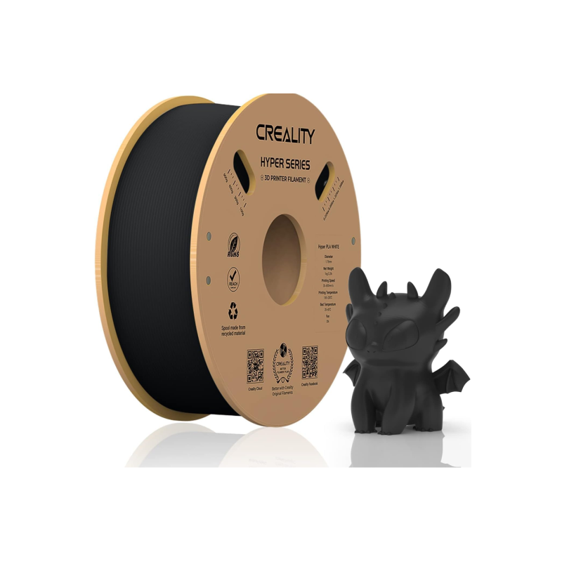CREALITY HYPER PLA 3D Printer Filament, Black, Temperatura printare: 200-220 grade celsius, Diametru filament: 1.75mm, Tensile strength: 52.99MPa, Bending strenght:92.38Mpa Dimensiuni rola filament: Diametru 200mm, inaltime 70mm, gaura centrala 56mm, vite