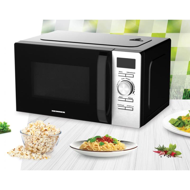 CUPTOR CU MICROUNDE HEINNER HMW-D2060BK, CAPACITATE 20L, CONTROL DIGITAL, DISPLAY LED, PUTERE CUPTOR 700W, 5 TREPTE DE PUTERE, 8 PROGRAME DE GATIRE AUTOMATE, TIMER, TIMP MAXIM DE GATIRE 60 MIN, FUNCTIE DECONGELARE, SEMNAL SONOR LA FINALIZAREA PROGRAMULUI,