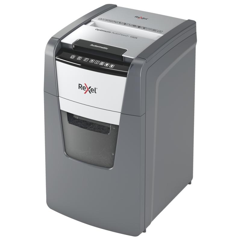 Distrugator automat documente Rexel OPTIMUM 130X , 130 coli, P4, cross-cut (tip confeti), cos 44 litri, negru-gri, "2020130XEU" (include TV 35lei)