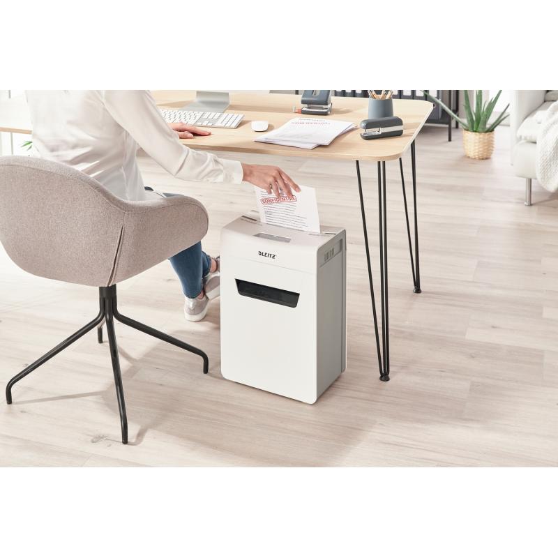 Distrugator manual documente Leitz IQ Protect 10X , 10 coli, P4, cross-cut (tip confeti), cos 18 litri, alb, Leitz "80920000" (include TV 10lei)