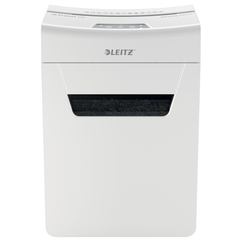 Distrugator manual documente Leitz IQ Protect 6M , 6 coli, P5, micro-cut (tip particule), cos 18 litri, alb, Leitz "80950000" (include TV 35lei)