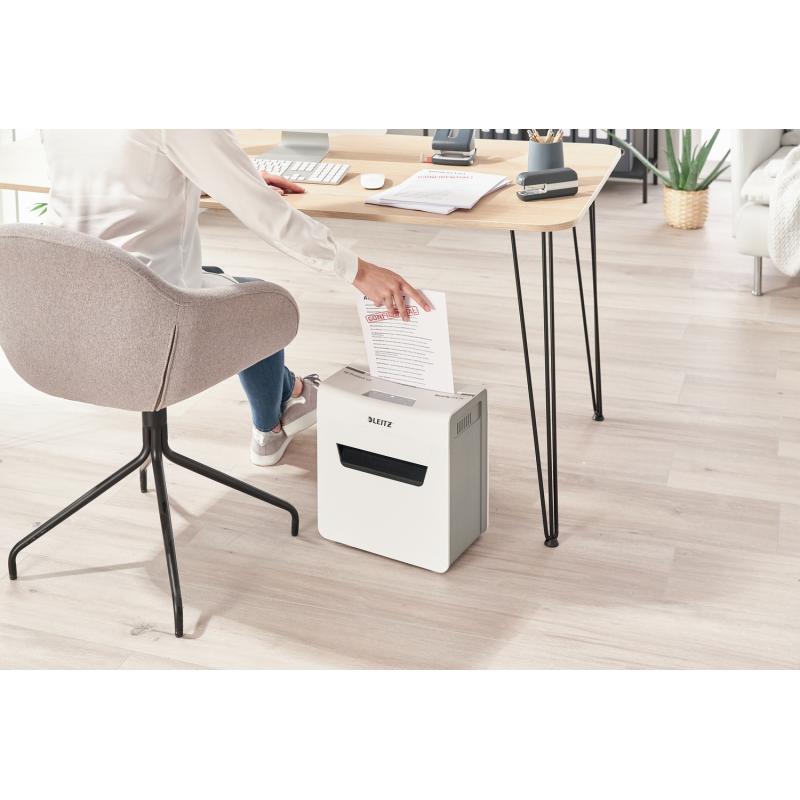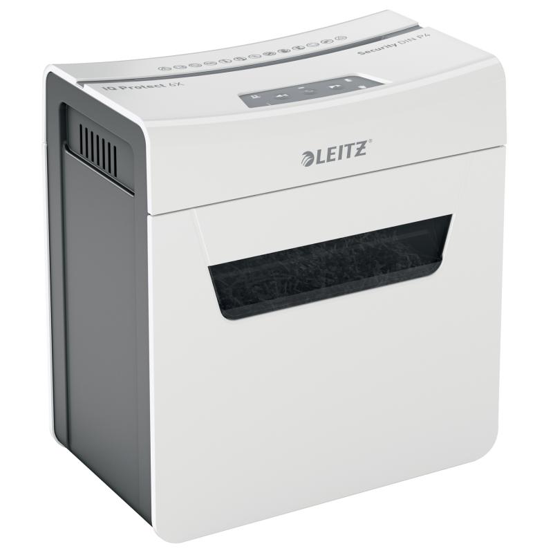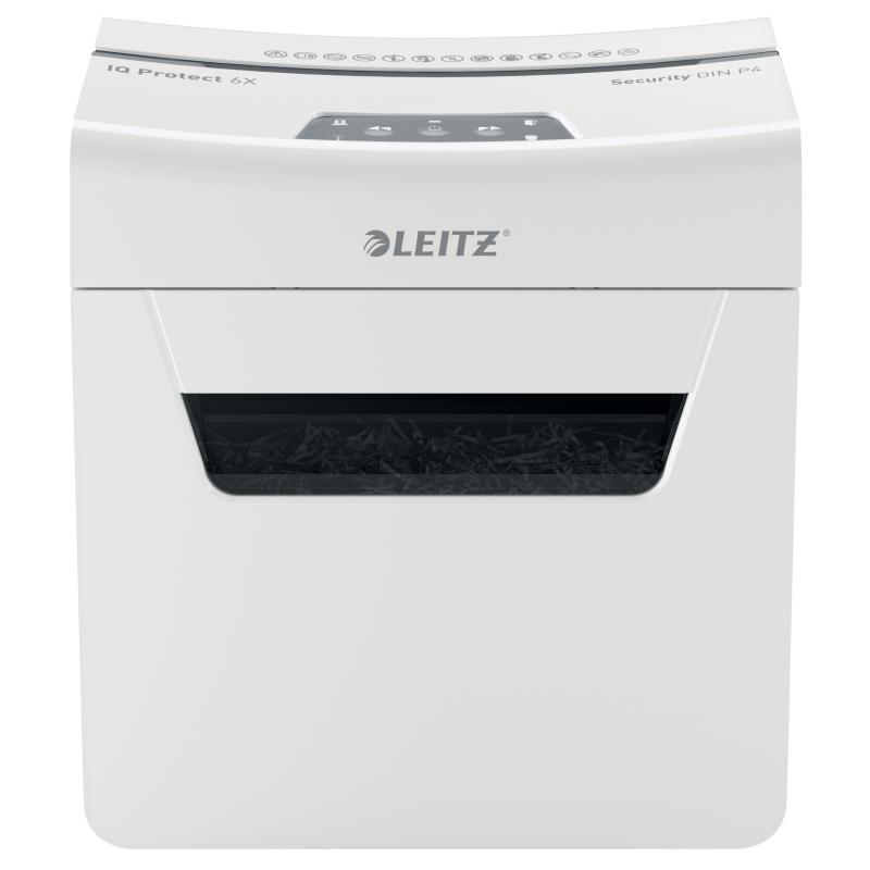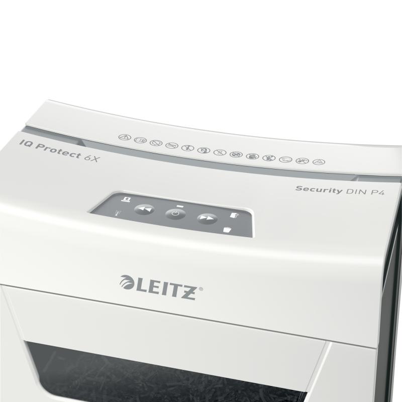 Distrugator manual documente Leitz IQ Protect 6X , 6 coli, P4, cross-cut (tip confeti), cos 10 litri, alb, Leitz "880900000" (include TV 10lei)