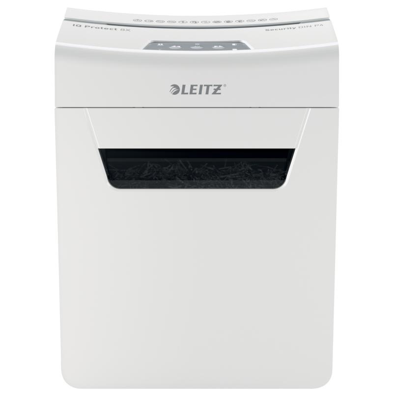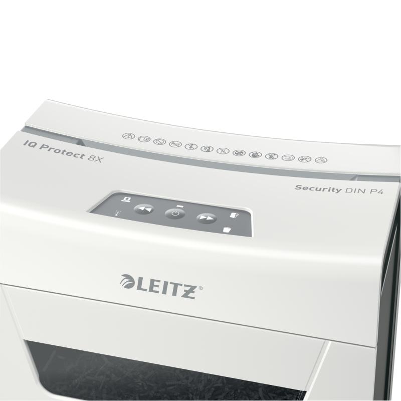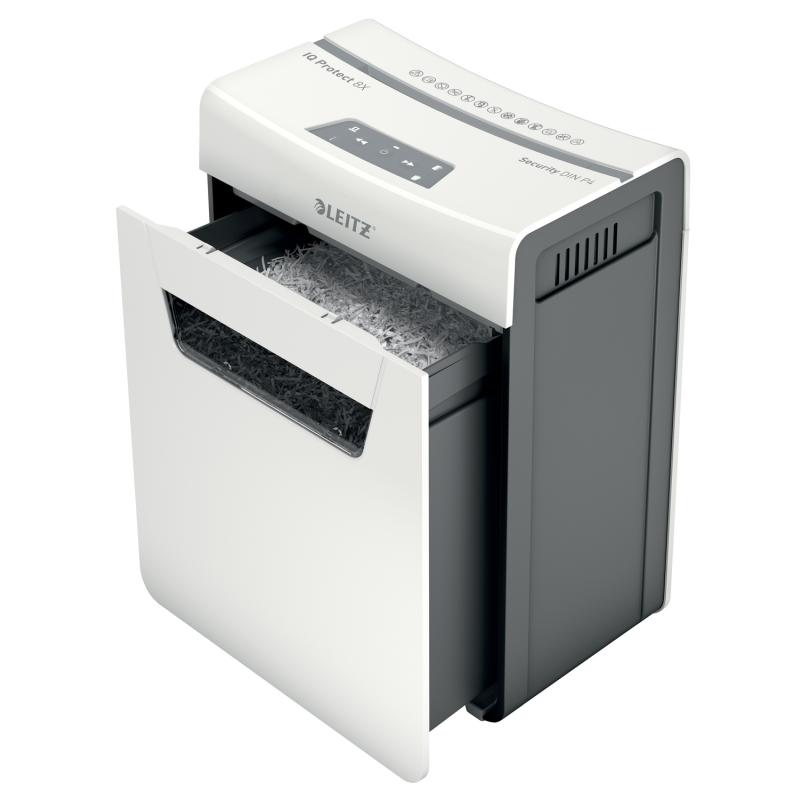 Distrugator manual documente Leitz IQ Protect 8X , 8 coli, P4, cross-cut (tip confeti), cos 14 litri, alb, Leitz "80910000" (include TV 35lei)