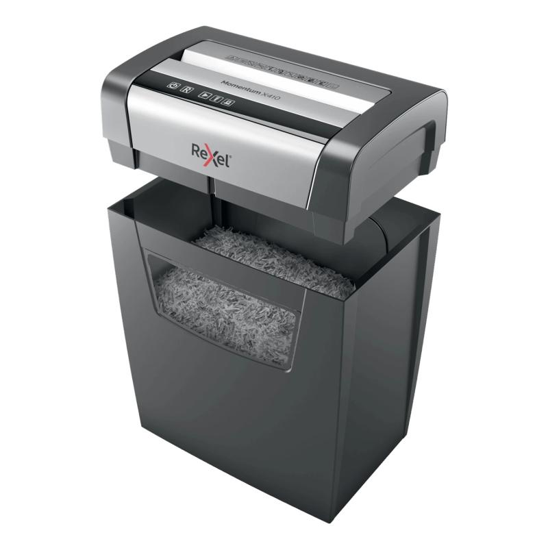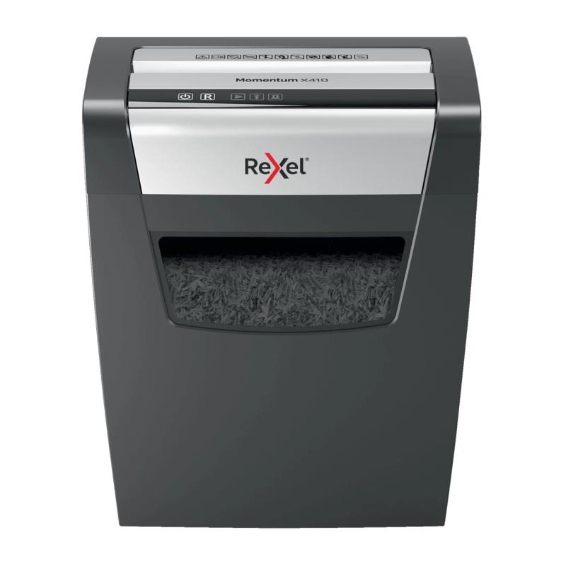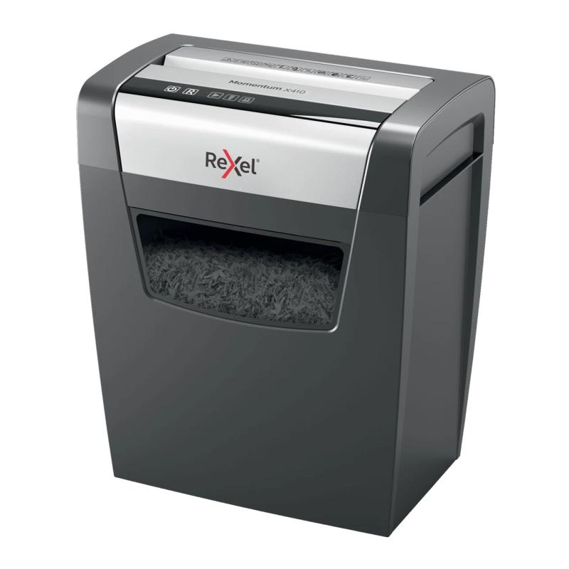 Distrugator manual documente MOMENTUM X410, 10 coli, P4, cross-cut (tip confeti) Rexel "2104571EU" (include TV 10lei)