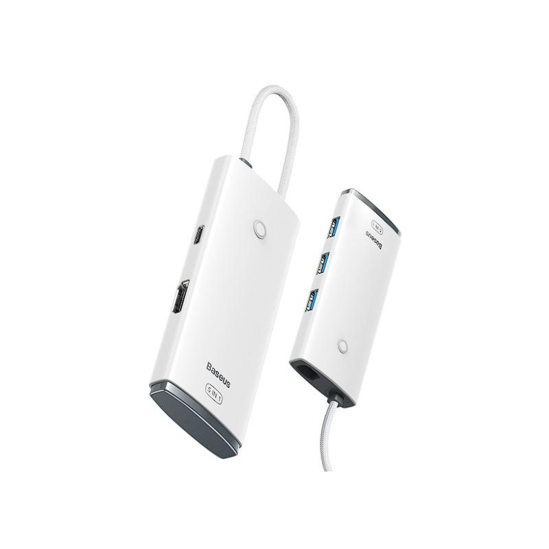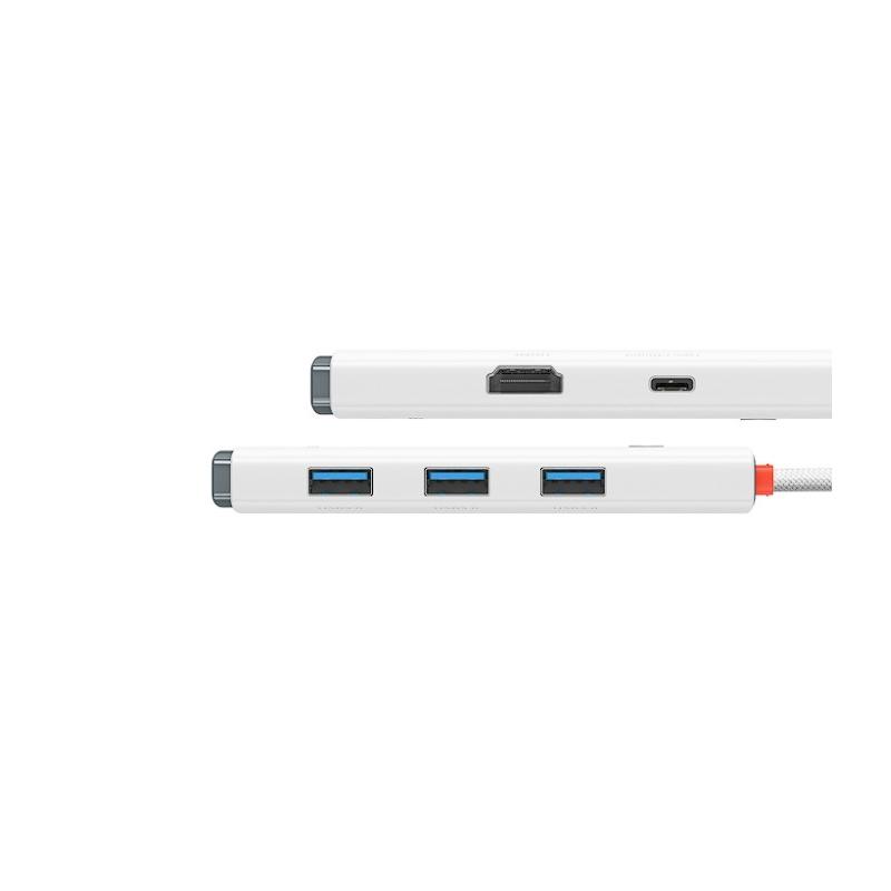 Docking Station Baseus Lite, conectare PC USB Type-C, USB 3.0 x 3, USB Type C x 1 PD 20V/5A, HDMI x 1/4K/30Hz, alb