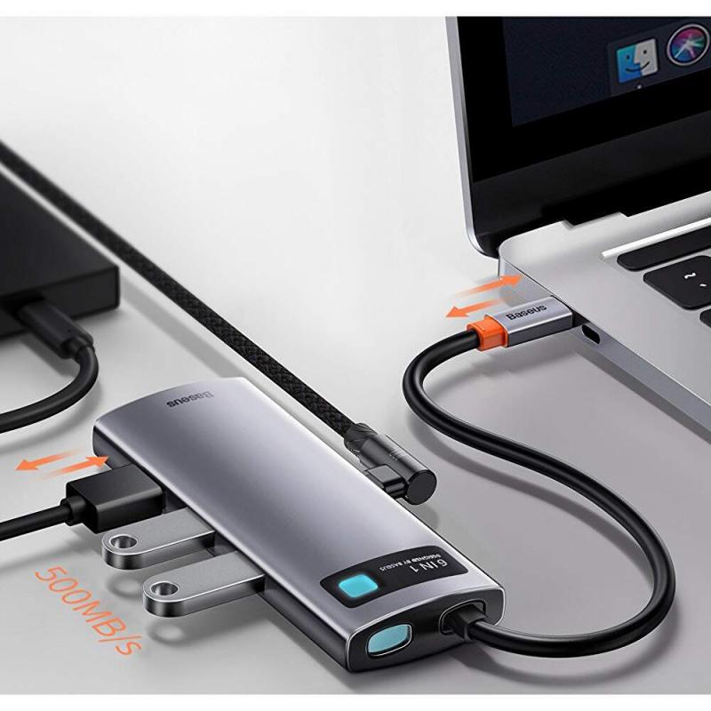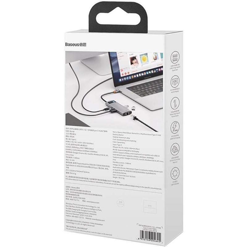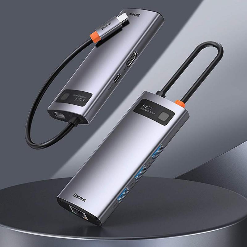 DOCKING Station Baseus Metal Gleam, conectare PC USB Type-C, USB 3.0 x 3, RJ-45 Gigabit LAN x 1, USB Type C x 1 PD 100W 5V / 9V / 14.5V / 20V 5A (Max.), HDMI x 1/4K/30Hz, LED, gri "CAHUB-CW0G" (include TV 0.18lei) - 6953156204645