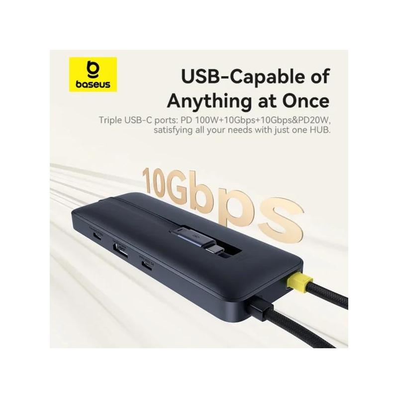 DOCKING Station Baseus Nomos Dual Fast Charging 6-in-1,conectare PC USB-C, 1 x USB 10G, cablu inclus 1 x USB-C (10Gbps si PD20W), 1 x USB 480Mbps, cablu inclus USB-C x 1 PD 100W, HDMIx1/4K/60Hz,gri "B00070902123-00" - 69321726