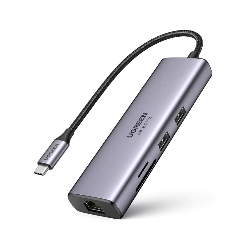 DOCKING Station Ugreen, "CM512" conectare PC USB Type-C, USB 3.0 x 2|cititor SD/micro SD x 1|Gigabit RJ-45 x 1|HDMI 4K x 1 la 60Hz|USB Type-C x 1 PD 100W , aluminiu, gri "60515" (include TV 0.8lei) - 6957303865154