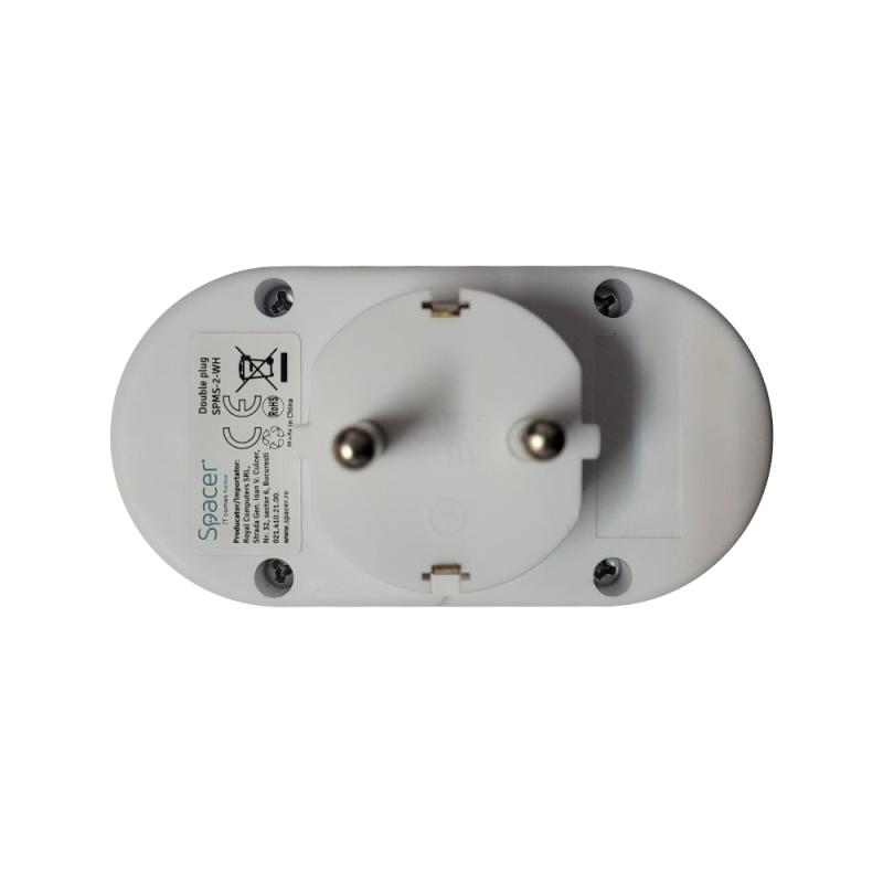 Dublu Stecher Spacer, Schuko, max 3650W, 16A, protectie copii, 2 prize Schuko, 1 stecher Schuko, "SPMS-2-WH"