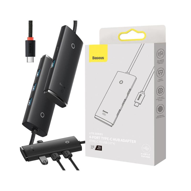 HUB extern Baseus Lite, porturi USB: USB 3.0 x 4, conectare prin USB Type-C, lungime 0.25m, negru, "WKQX030301" (include TV 0.8lei) - 6932172606244