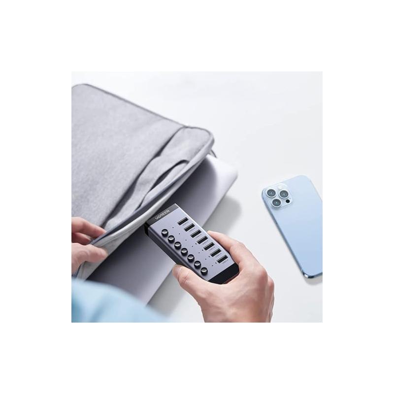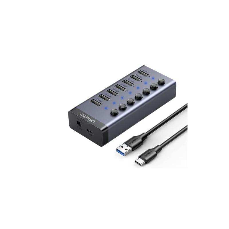 HUB extern Ugreen, "CM481" porturi USB: USB 3.0 x 7, conectare prin USB Type-C, alimentare separata, aluminiu, lungime 15 cm, gri, "90307"