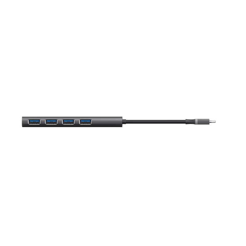 HUB USB Trust Halyx, USB-C la 4 x USB-A 3.2 Gen 1, dimensiune cablu 10cm, din aluminiu, argintiu