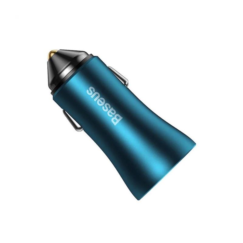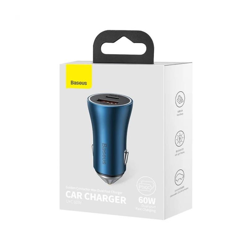 INCARCATOR auto Baseus Golden Contactor Max, Quick Charge 60W, 1 x USB 5V/3A, 1 x USB Type-C, albastru "CGJM000103" - 6932172608019