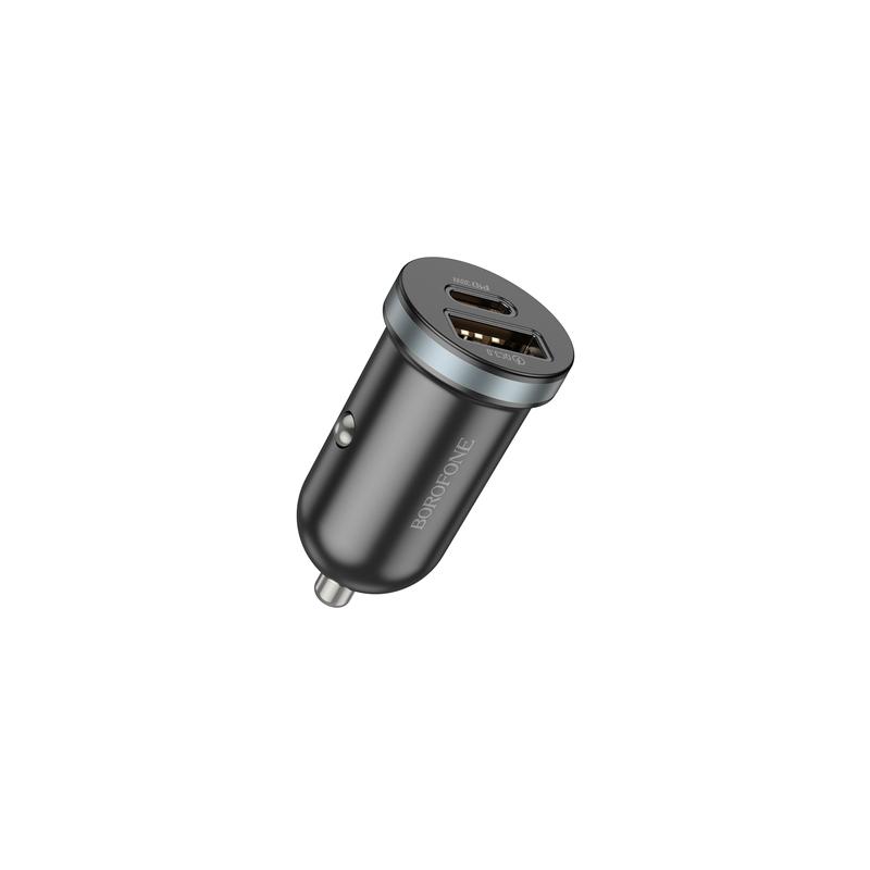 INCARCATOR auto Borofone "BZ21", pt. bricheta auto, 1 x USB max.18W, 1 x USB Type-C max 30W, negru "6941991105180"