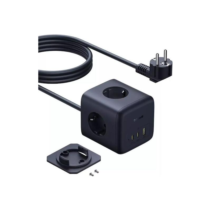 INCARCATOR RETEA Baseus EnerFill FA11 Cube Powerstrip, QC 67W, 3 x AC, 1xUSB Type-C, 1 x USB, lungime cablu 1.5m, negru "E00082100123-00" - 6932172687526