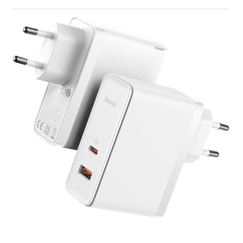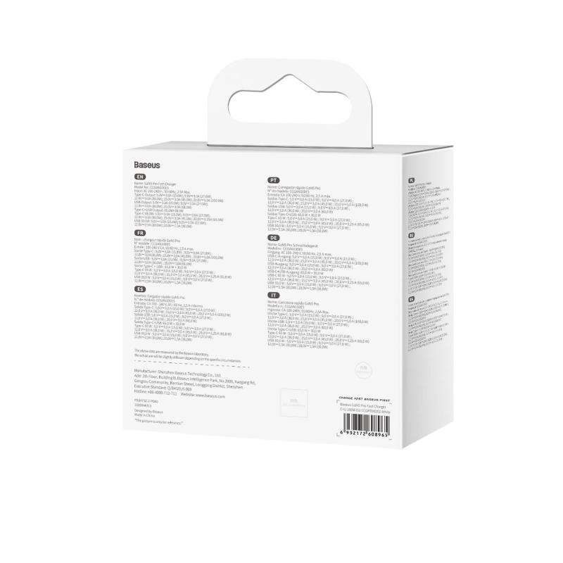 INCARCATOR retea Baseus GaN5 Pro, Quick Charge 100W, 1 x USB, 1 x USB Type-C, include cablu USB Type-C la USB Type-C 100W 1m, alb "CCGP090202" - 6932172608965