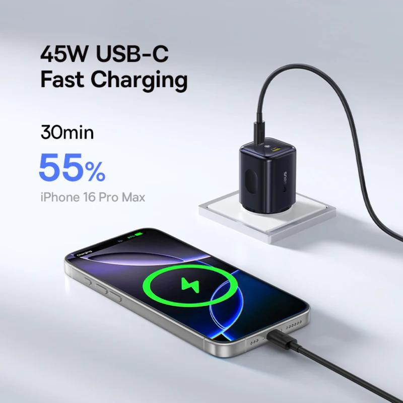 INCARCATOR retea Baseus PicoGo AN13, Quick Charge 45W, 2 x USB Type-C, negru "E0121F00" - 6953156211681