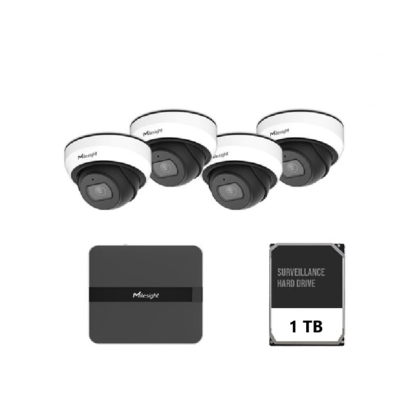 Kit supraveghere video Milesight 4 buc camera Dome MS-C2973-PD + 1 buc NVR MS-N1004-UPC