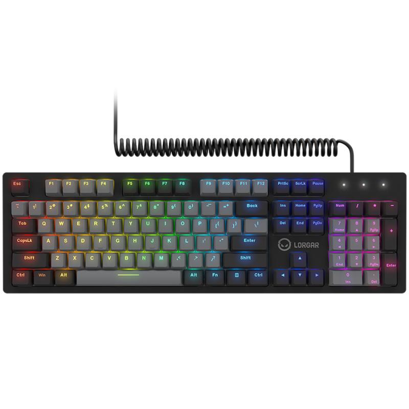 LORGAR Azar 514, Wired mechanical gaming keyboard, RGB backlight, 1680000 colour variations, 18 modes, keys number: 104, 50M clicks, linear dream switches, spring cable up to 3.4m, ABS plastic+metal, magnetic cover, 450*136*39mm, 1.17kg, black, EN layout