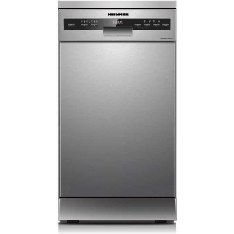 Masina de spalat vase Heinner HDW-FSM45710AXD+++, 10 seturi, 7 programe, clasa de eficienta energetica D, Auto-door opening, control electronic, display LED, programe: Auto, Rapid, Intensiv, Universal, Pahare, 90 minute, Half load (dual zone), pornire i