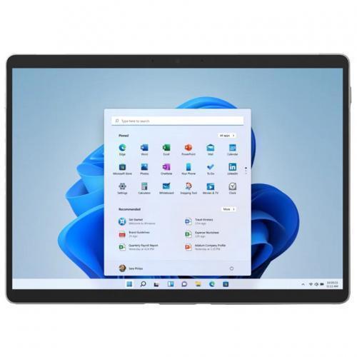 Ms Surface Pro 8 platinum, 13 inch, resolution: 2880 x 1920, aspect ratio: 3:2, Intel Core i5-1145G7, 2.6 GHz, 16GB RAM, 256GB SSD storage, graphics: Intel Iris Xe Graphics, connerctors: 1 x Surface Connect, 1 x 3.5 mm audio female, 2 x Thunderbolt 4 (Typ
