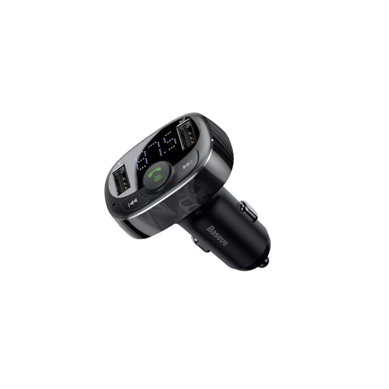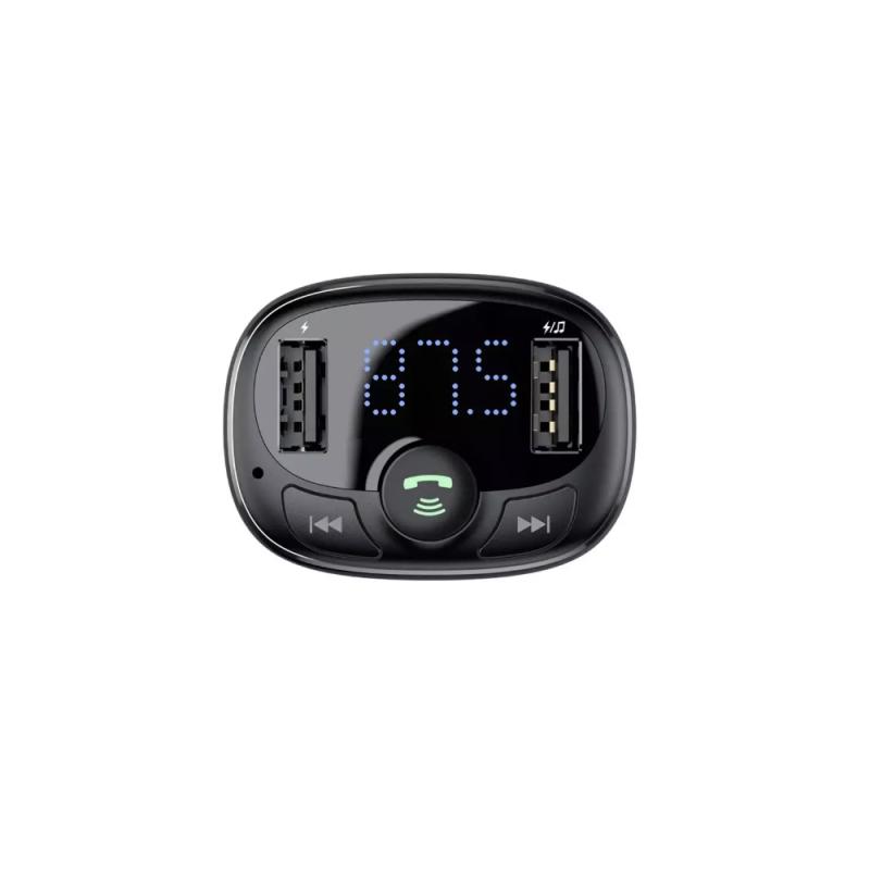 MODULATOR AUTO FM Baseus T-Typed, Bluetooth 4.2, 2 x USB 5V/3.4A max, 12V-24V, frecventa modulator FM: 87,5-108.0MHZ, format MP3/WAV/FLAC/APE/WMA, answer/reject/hang up/redial, black "CCMT000001" (include TV 0.8lei) -