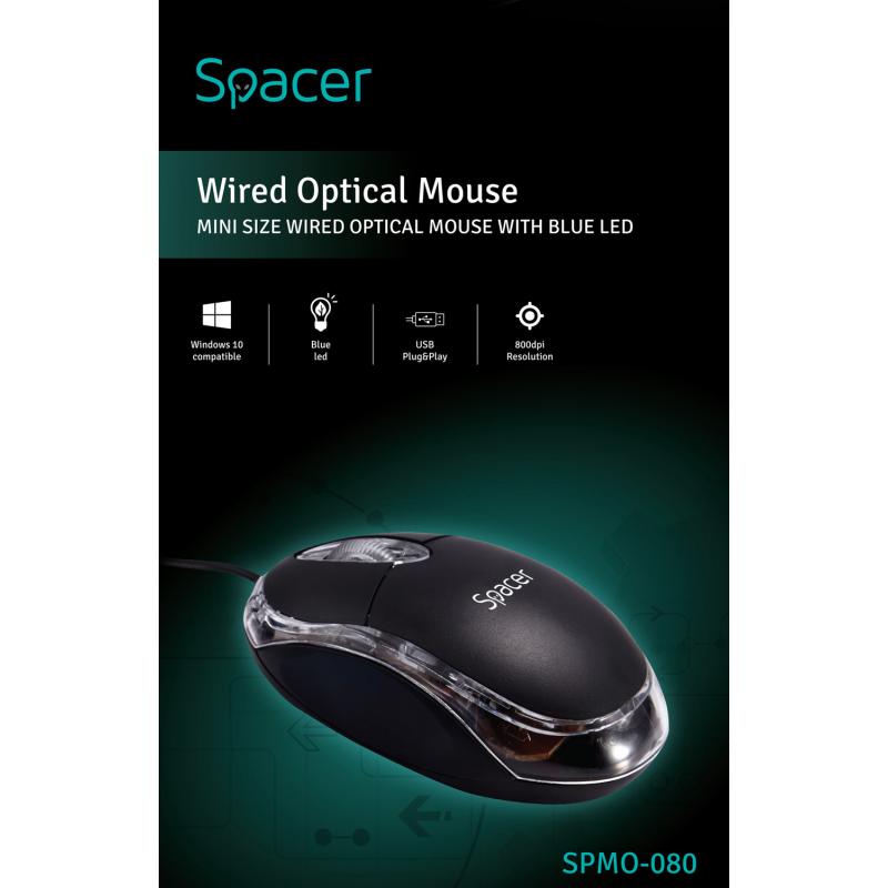 MOUSE Spacer, PC sau NB, cu fir, USB, optic, 800 dpi, butoane/scroll 3/1, negru, SPMO-080
