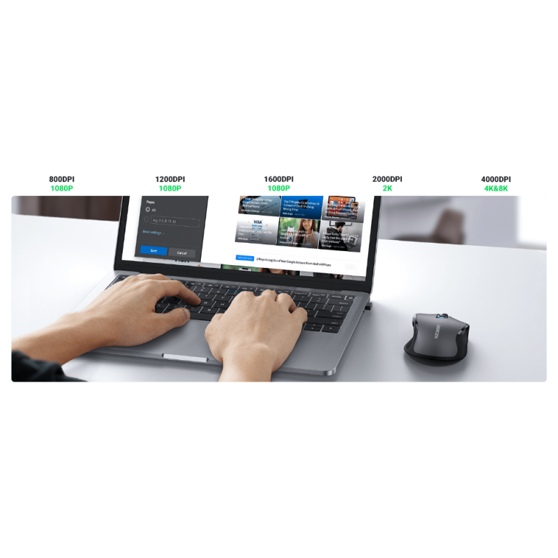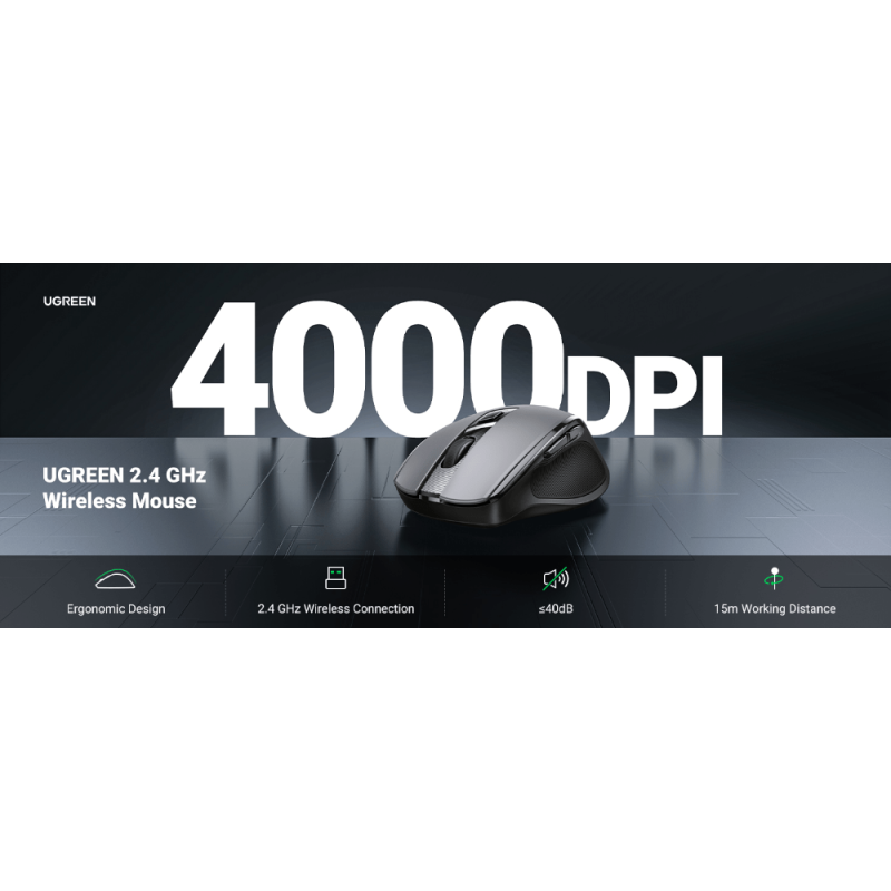 MOUSE Ugreen, "MU101" PC sau NB, wireless 2.4GHz + Bluetooth, optic, 5/1 butoane/scroll, 4000 dpi, negru "90395" - 6957303893959