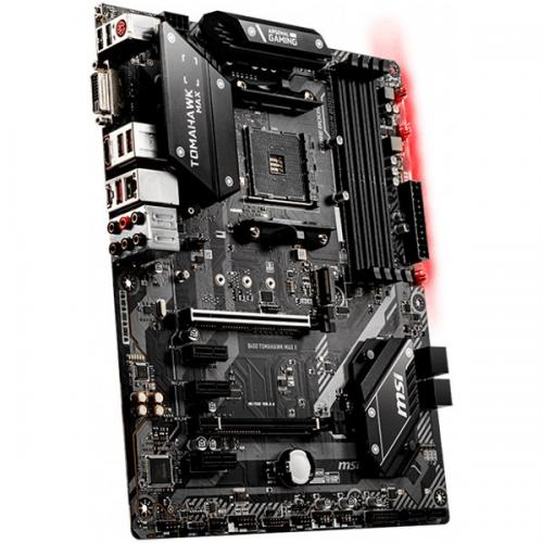 MSI B450 TOMAHAWK MAX II, ATX, AMD AM4 Socket, 1x PCI-E 3.0 x16, 1x PCI-E 2.0 x16, HDMI, DVI-D, 4 DIMMs, Dual Channel DDR4-4133+(OC)Mhz, 3x PCI-E 2.0 x1, 1x M.2, 6x SATA, 2x USB 3.2 Gen2, 4x USB 3.2 Gen1, 6x USB 2.0, RTL8111H LAN, 7.1 HD Audio