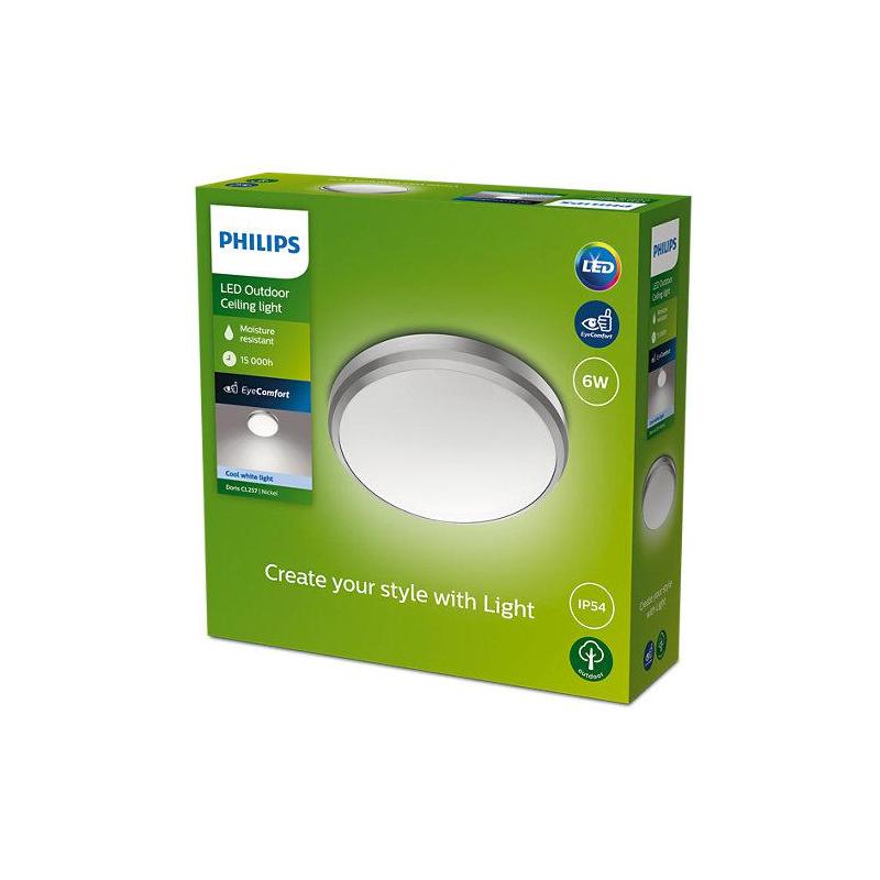 Plafoniera LED pentru exterior Philips Doris, 6W, 640 lm, lumina neutra (4000K), IP54, 22 cm, Nichel