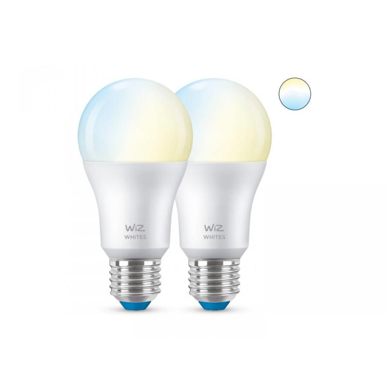 2 Becuri LED inteligente WiZ Connected Whites A60, Wi-Fi, E27, 8W (60W), 806 lm, lumina alba (2700-6500K), compatibil Google Assistant/Alexa/Siri