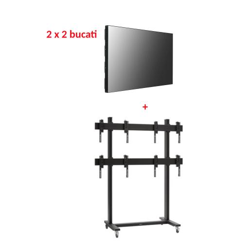 Pachet Videowall cu 2x2 Display LG-55VL5PJ si stand videowall 2x2 Vogel's TVW2255 cu baza mobila
