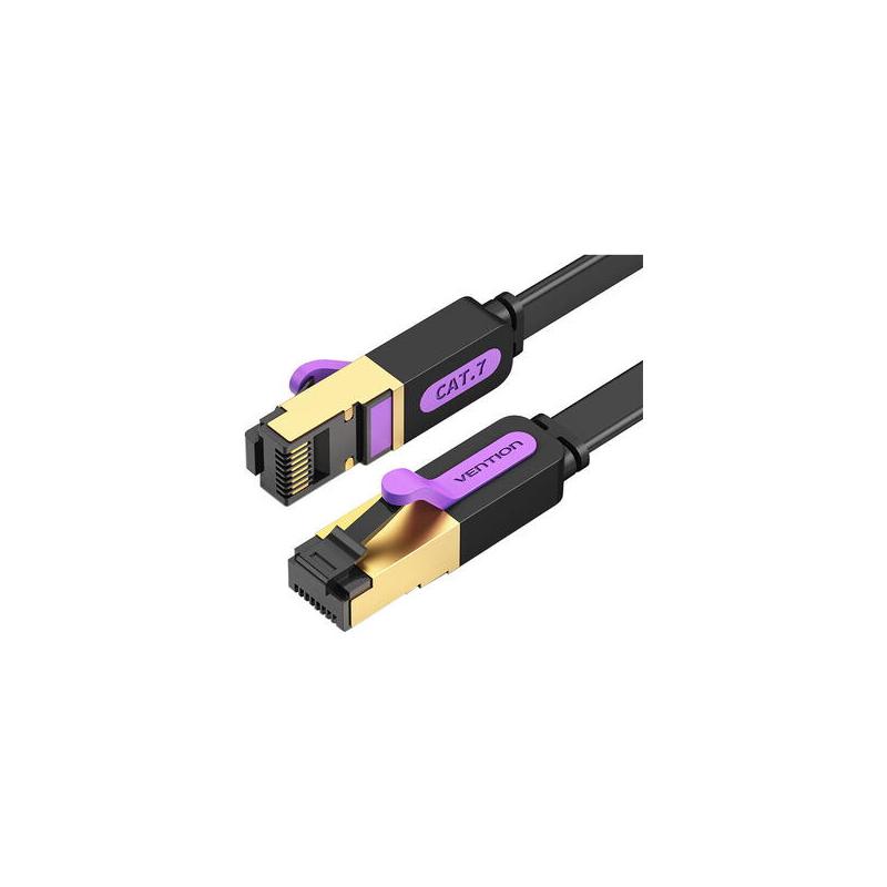 Patch Cord STP Vention, Cat. 7, 2m, flat cable, conductor cupru, viteza max transfer 10 Gbps, invelis PVC, negru, "ICABH" - 6922794729834