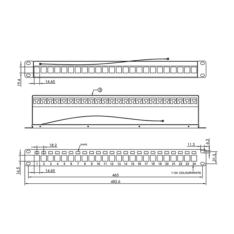PATCH PANEL LOGILINK 24 porturi, Keystone, ecranate, 1U pentru rack 19", management cabluri spate, M6 kit montare, black, "NK4058"