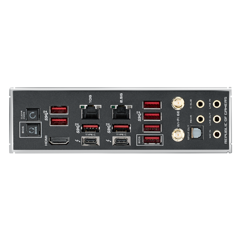 - Retea de inalta performanta: WiFi 6E la bord (802.11ax), Ethernet Marvell® AQtion 10 Gb, Ethernet Intel® 2,5 Gb si ASUS LANGuard;