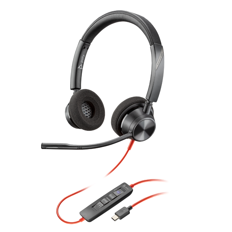Poly Blackwire 3220 Stereo USB-C Headset +USB-C/A Adapter