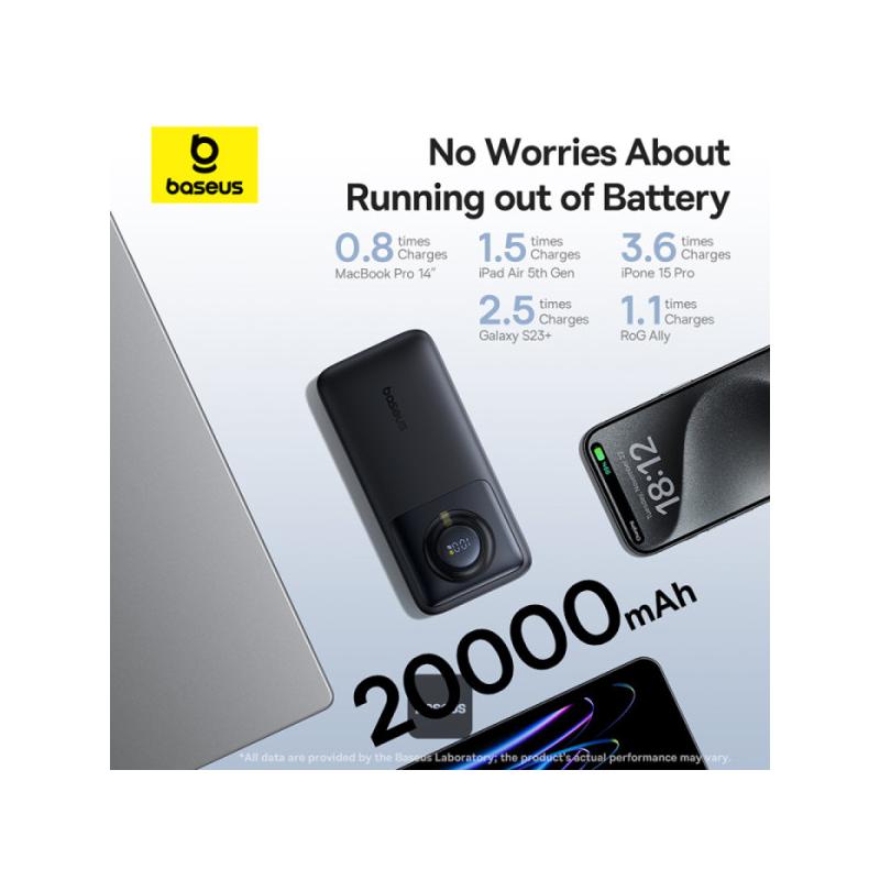 POWER BANK Baseus Free2Pull, display, capacitate 20000mAh, 65W, cablu integrat USB Type-C, 1 x USB Type-C, total 5V/3A, negru, "P10073700123-00" - 6932172659615