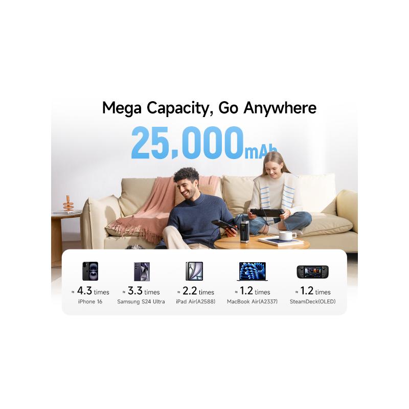 POWER BANK Cuktech P+ Series 2C1A, 25000mAh, PD 3.1, 210W, 1 x USB; 2 x USB Type-C, digital display pt. status baterie, negru, "CUK00P23GLBK"