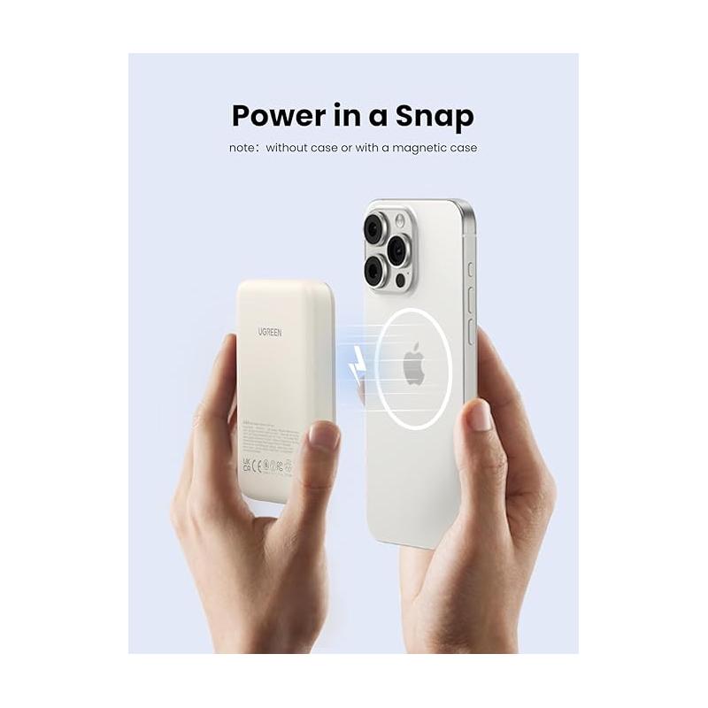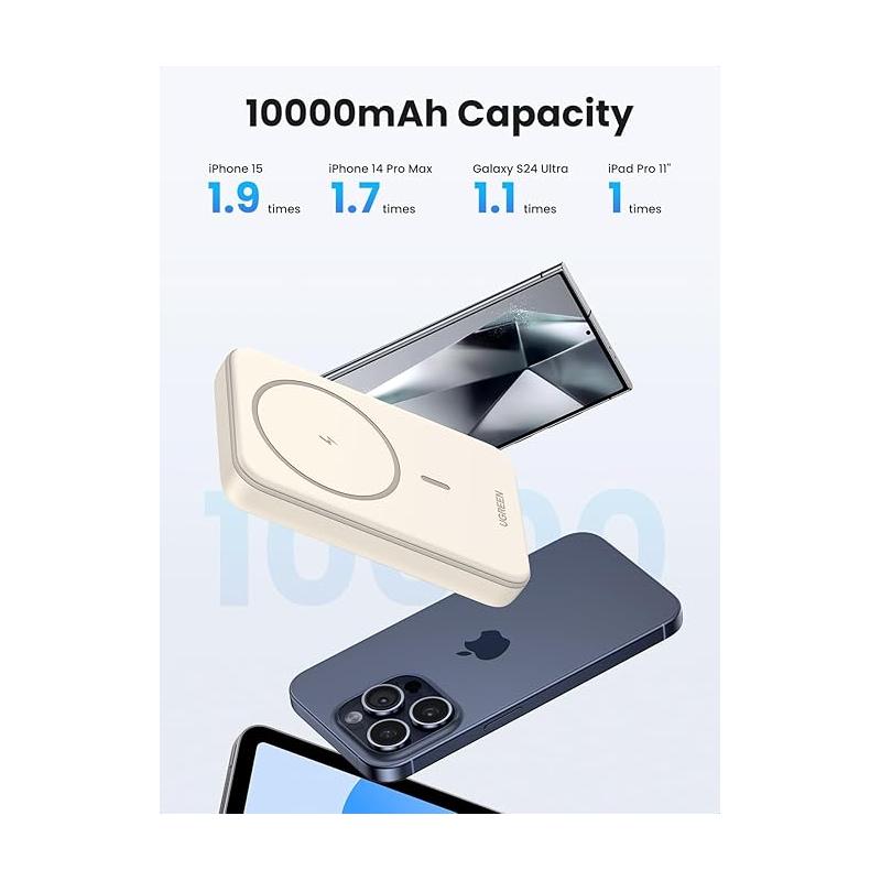 POWER BANK Ugreen "PB561" Magnetic Wireless, 10000mAh, 20W, 1 x USB Type-C output/input, 15W wireless charging, alb, "25208" - 6941876222087