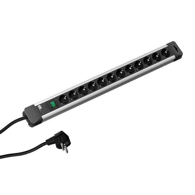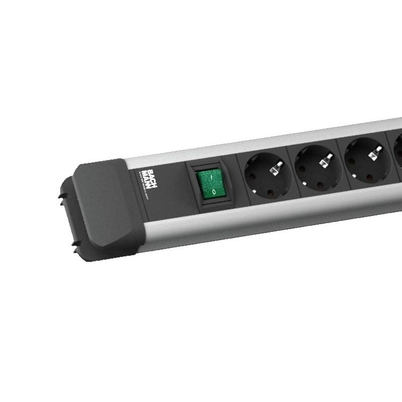 PRELUNGITOR Bachmann, Schuko x 12, conectare prin Schuko (T), cablu 2 m, protectie copii, negru | argintiu, "330.103"