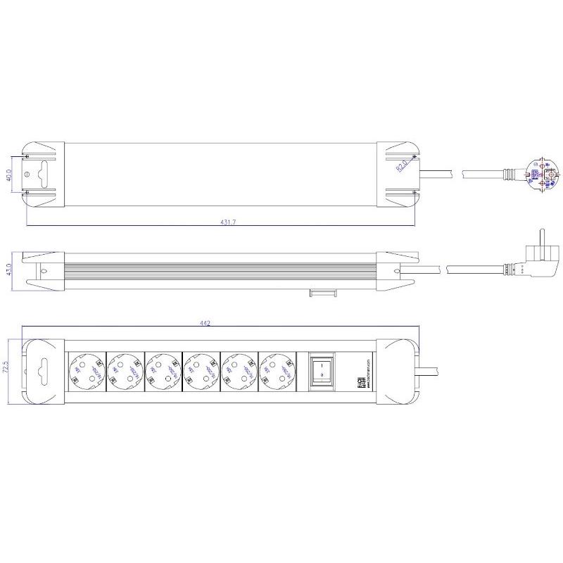 PRELUNGITOR Bachmann, Schuko x 5, conectare prin Schuko (T), cablu 2 m, protectie copii, negru, "330.101"