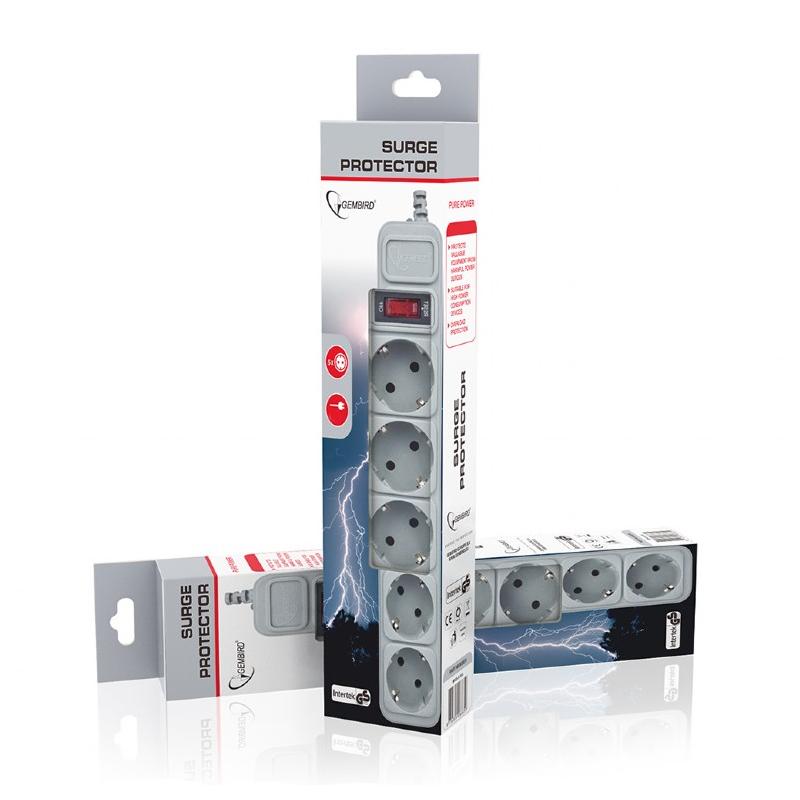 PRELUNGITOR GEMBIRD, Schuko x 5, conectare prin Schuko (T), cablu 3 m, 16 A, protectie supratensiune, protectie copii, gri, "SPG3-B-10C" (include TV 0.8lei)