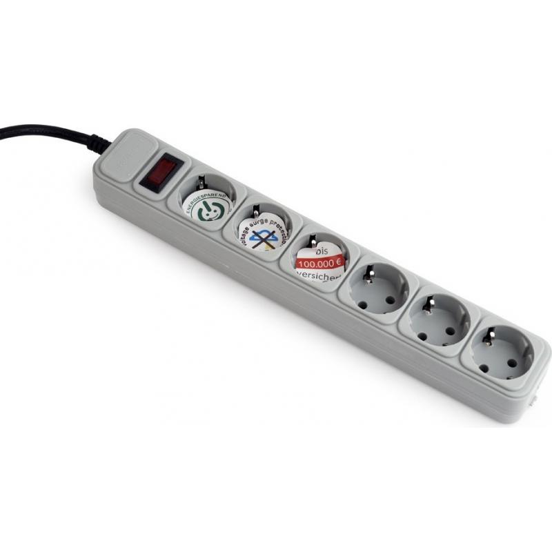 PRELUNGITOR GEMBIRD, Schuko x 6, conectare prin Schuko (T), cablu 1.8 m, 16 A, protectie supratensiune, protectie copii, gri, "SPG6-B-6C" (include TV 0.8lei)