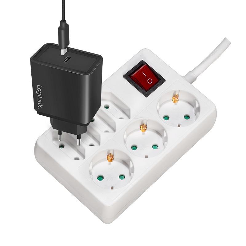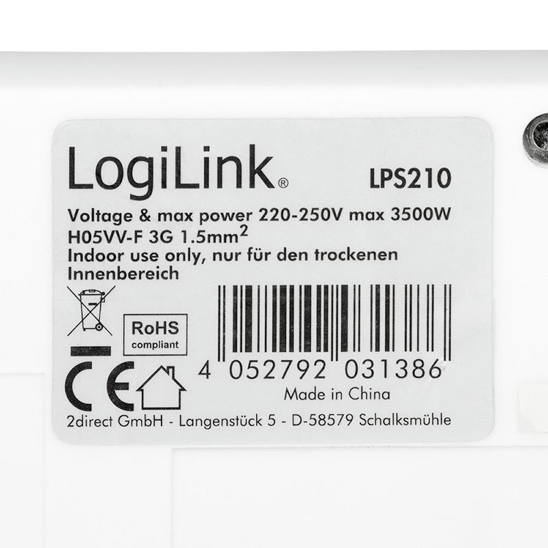 PRELUNGITOR LOGILINK, Schuko x 3, Euro skt x 4, conectare prin Schuko (T), cablu 5 m, 16 A, protectie stropire cu apa, on / off, alb, "LPS210" (include TV 0.8lei)