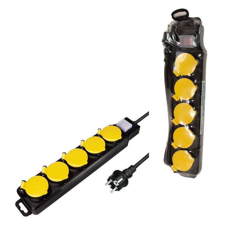 PRELUNGITOR LOGILINK, Schuko x 5, conectare prin Schuko (T), cablu 1.5 m, 16 A, protectie stropire cu apa, negru/ galben, "LPS255" (include TV 0.8lei)