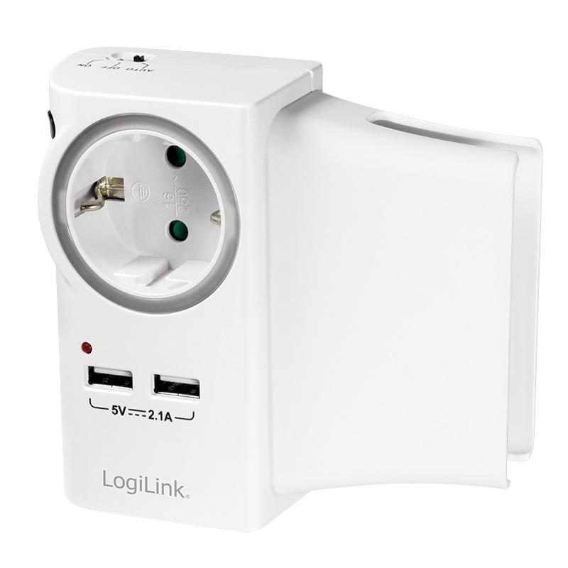 PRIZA LOGILINK, Schuko x 1, conectare prin Schuko (T), USB x 2, 16 A, protectie supratensiune, protectie copii, alb, "PA0165" (include TV 0.8lei)