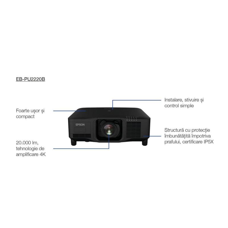 "Proiector EPSON EB-PU2220B, tehnologie 3LCD, display 1.03"", 20.000 Lumeni, Rezolutie WUXGA, Aspect Ratio 16:10, contrast: 2.500.000:1, sursa lumina: Laser, 20.000 ore, diagonala: 60""-1000"", Interfata:USB 2.0-A (2x), USB 2.0 Tip B (numai pentru servic