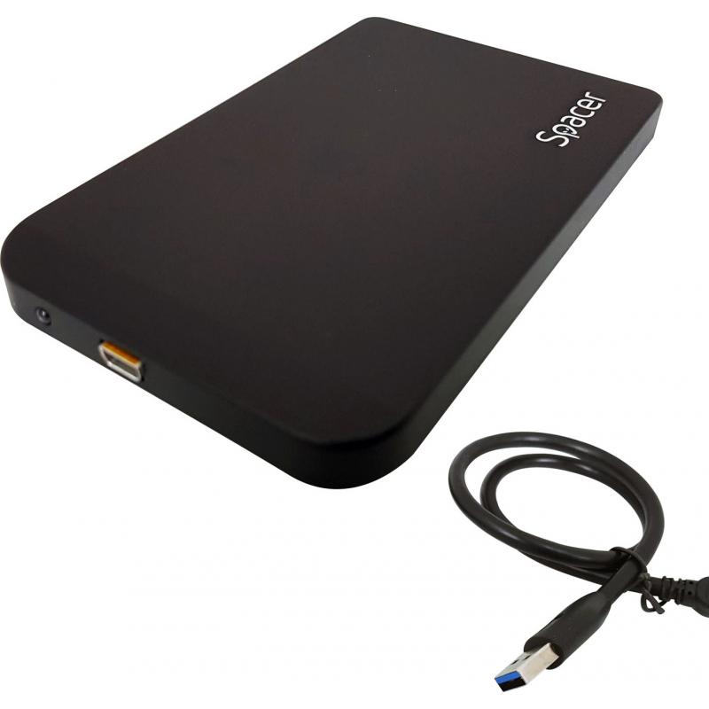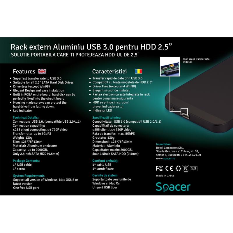 RACK extern SPACER, pt HDD/SSD, 2.5 inch, SATA, interfata PC USB 3.0, Husa piele sintetitca, aluminiu, negru