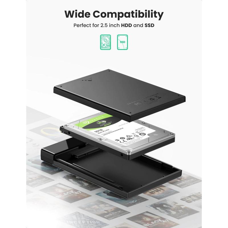 RACK extern Ugreen, "US221" pt HDD si SSD SATA 2.5" conectare USB 3.0 max 6 Gbps, 1 x 50cm USB Type-C to USB 3.0 Cable, ABS, negru "50743" (include TV 0.8lei) - 6957303857432
